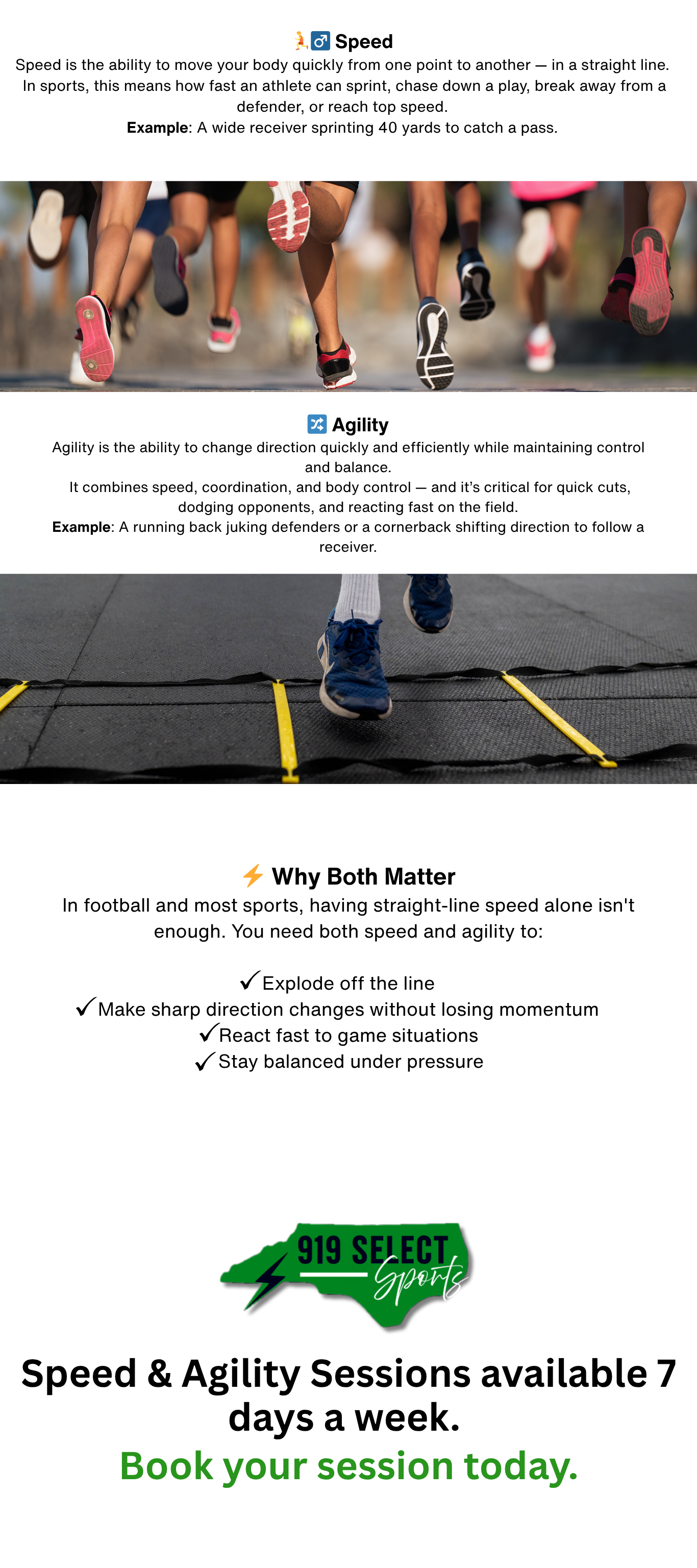 Get quicker off the line, sharper in cuts, and faster on game day. - 💪 Strength Training